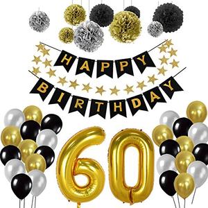 60th Birthday Party Decorations Kit Happy Birthday Black Banner