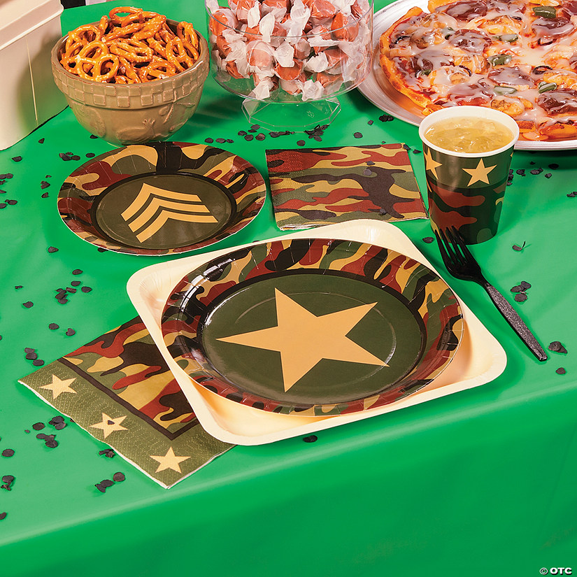 Army camouflage theme party supplies for the military mad.