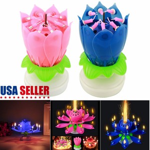 Cake Topper Lotus Flower Rotating Birthday Candle Blossom
