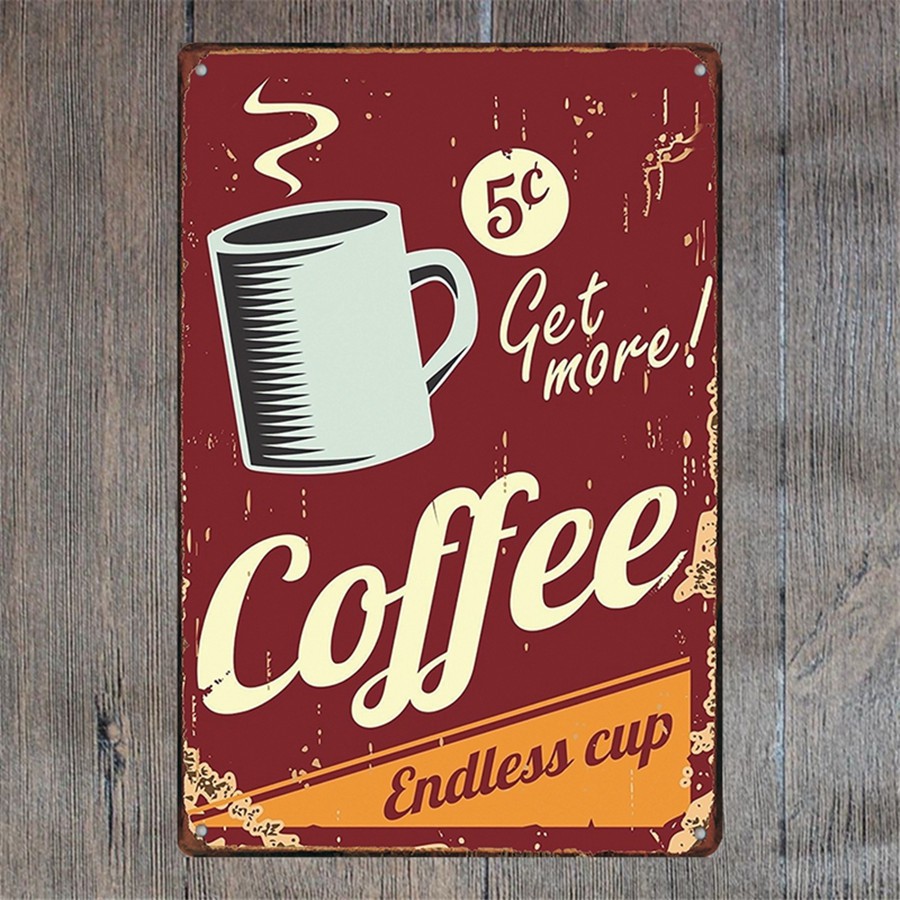 Coffee Sign Vintage Wall Decor Plaque Metal Retro Poster