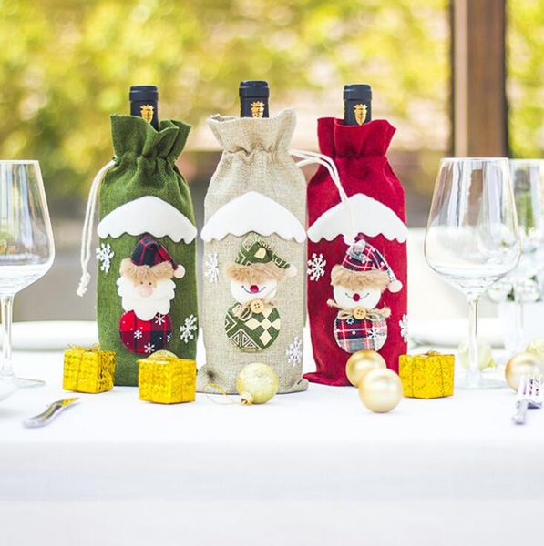 Santa Snowman Wine Bottle Covers Bag Merry Christmas Table